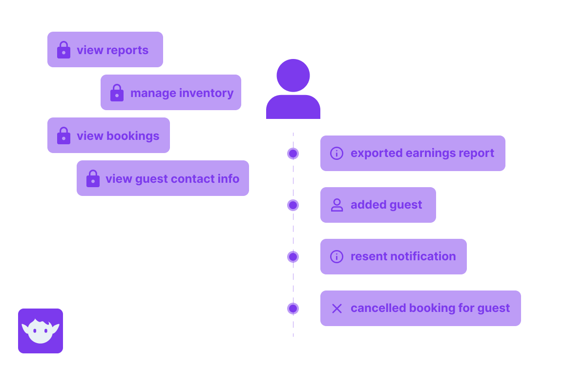 Create accounts for your staff to allow them to perform only specific permissions and actions that you define. StayElf maintains an audit trail of all actions performed by everyone, so you can easily trace any mishaps or changes.