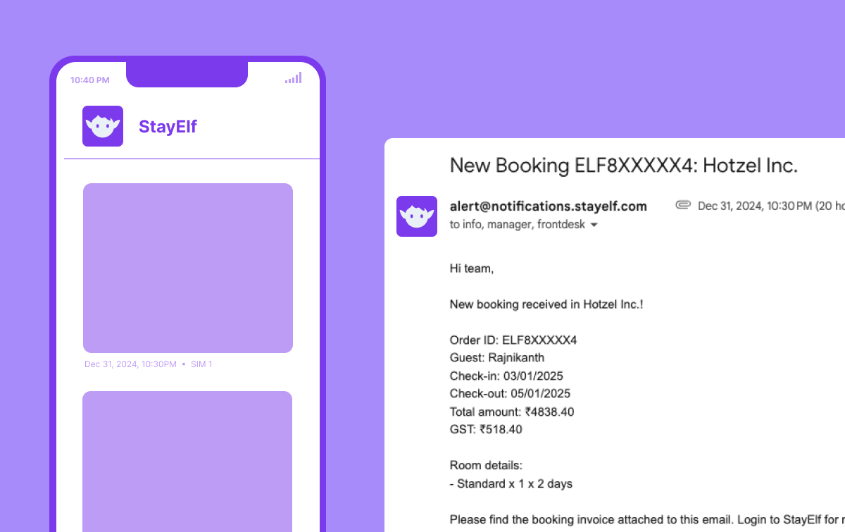 Set inventory and rates on StayElf, and they will be automatically synced to your connected OTAs. StayElf also pulls in bookings from OTAs and lets you manage them right within the app.